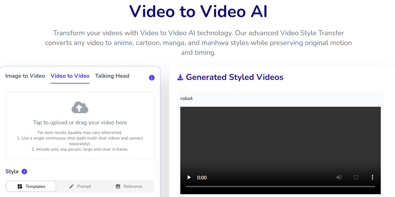 - Video Style Converters (e.g. Runway, Pika Labs): Strong at motion and video editing, but not specialized for anime styling.
