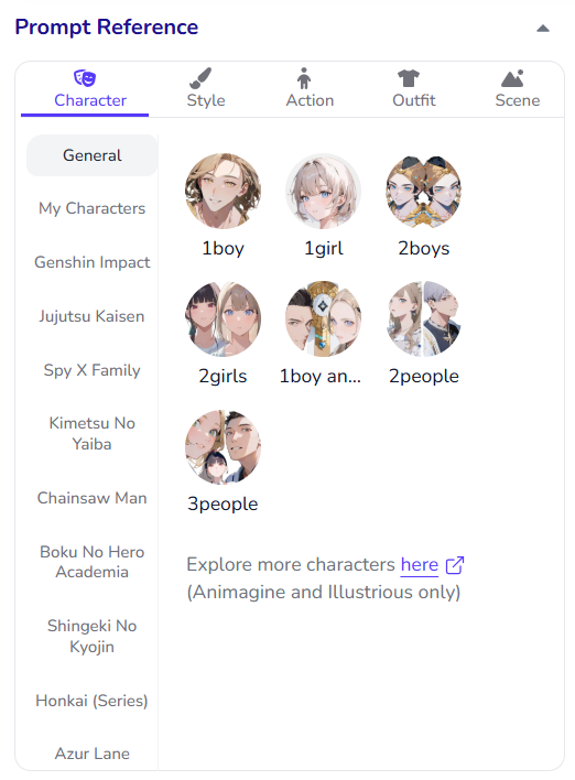 - AI Character Generator: Create unique OCs (original characters) with prompts