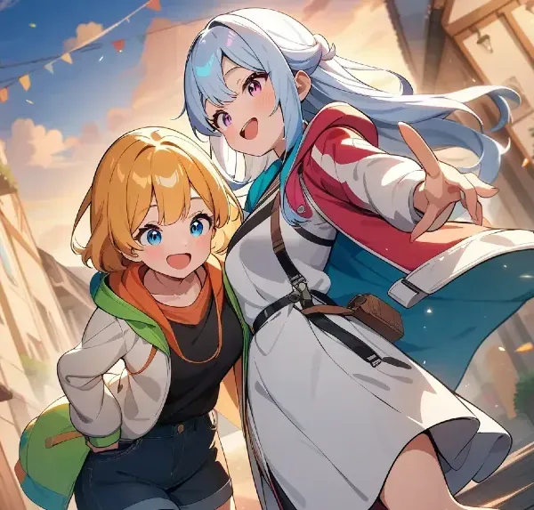 - Instead of “girl in kimono”, write: “two anime girls, best friends, colorful anime style, detailed artwork”.