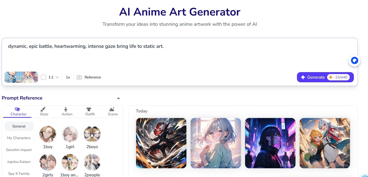 - ⚡ Fast & Simple – Type a prompt, adjust style presets, and generate anime-quality art in seconds.